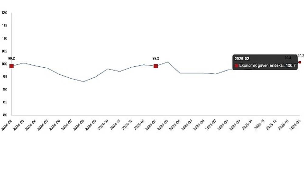 Ekonomik güven endeksi Ocak ayında 99,4 iken, Şubat ayında %1,4 oranında artarak 100,7 değerini aldı.