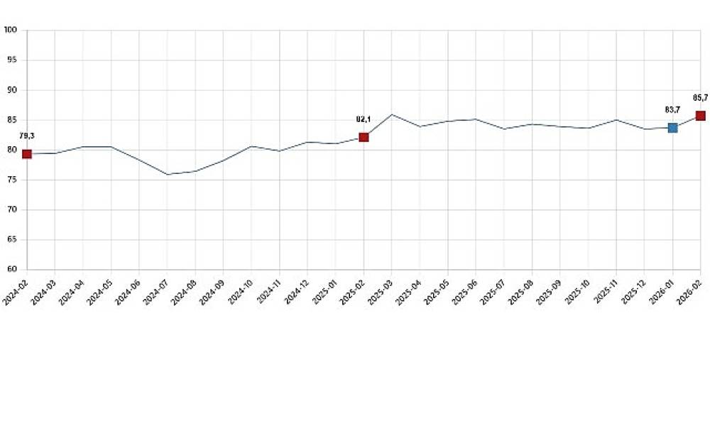 Türkiye İstatistik Kurumu ve Türkiye Cumhuriyet Merkez Bankası işbirliği ile yürütülen tüketici eğilim anketi sonuçlarından hesaplanan tüketici güven endeksi, Ocak ayında 83,7 iken Şubat ayında %2,3 oranında artarak 85,7 oldu.